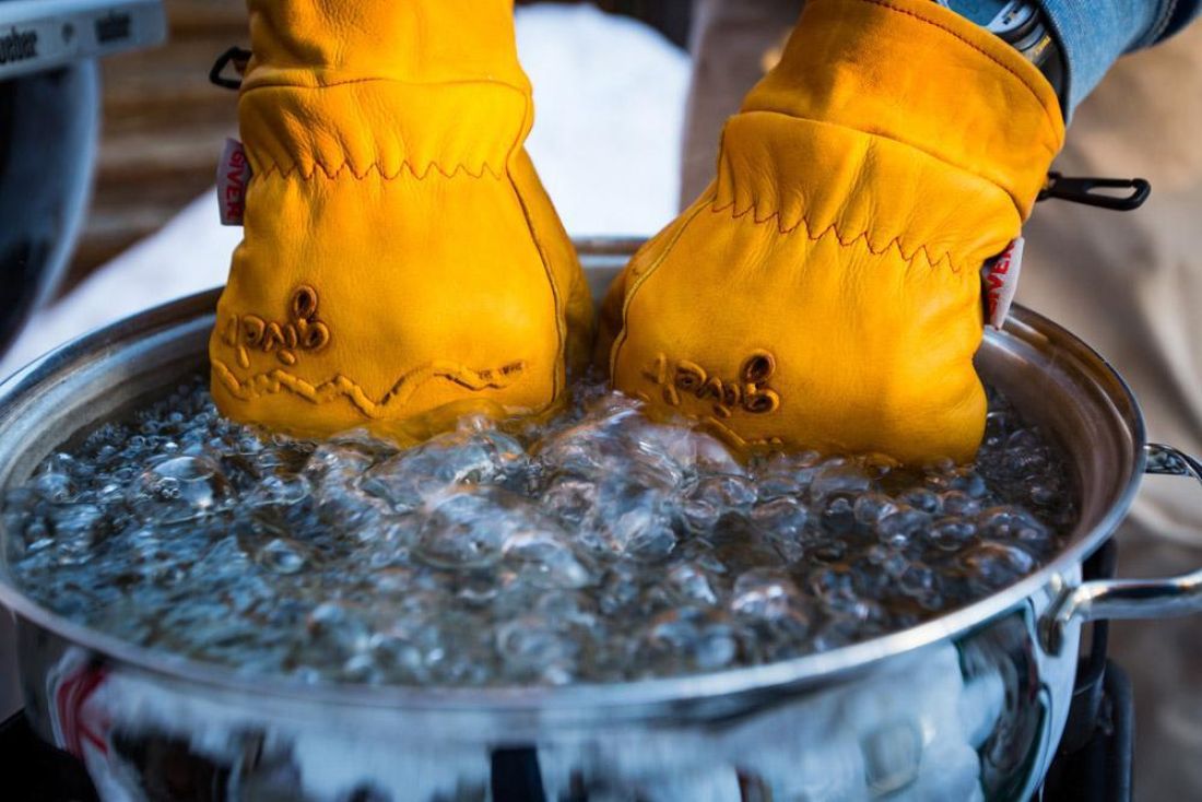 C’est l’explication la plus plausible. En tous cas au toucher c’est plutôt bluffant. Cet épais mélange de cuirs est enduit à la cire pour assurer l’étanchéité et pour finir ajoutez à cela une doublure en Hipora (membrane polyuréthane microporeuse imperméable à l'eau et étanche au vent). Point important, ne vous étonnez pas si au début les gants vous semblent extrêmement raides.
