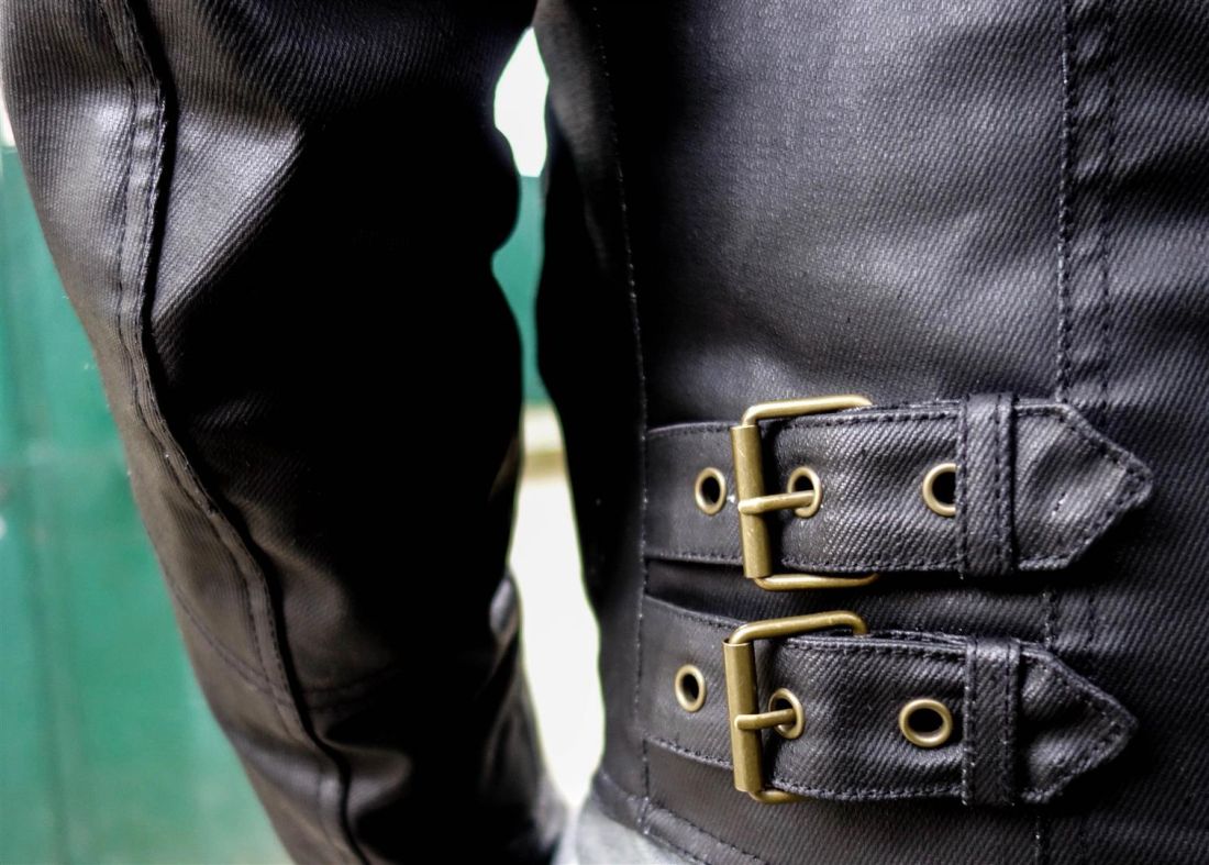 Nous sommes donc sur un blouson sobre, noir en coton enduit vendu avec 4 protections homologuées CE EN 1621-1 : 2 aux épaules et 2 aux coudes. Elles sont toutes retirables et le blouson peut tout à fait être porté sans. Un système de serrage à la taille plutôt pratique a été mis pour un meilleur ajustement. Au niveau des poignets vous pourrez choisir le meilleur serrage grâce au velcro prévu à cet effet. Côté « rangement » la marque n’a pas été avare : 6 poches extérieures (4 en boutons pression et 2 en fermeture éclair), 2 poches intérieures discrètes et pour finir 1 poche intérieure pour smartphone. Membrane (sous couche du tissu) REISSA® 100% étanche.